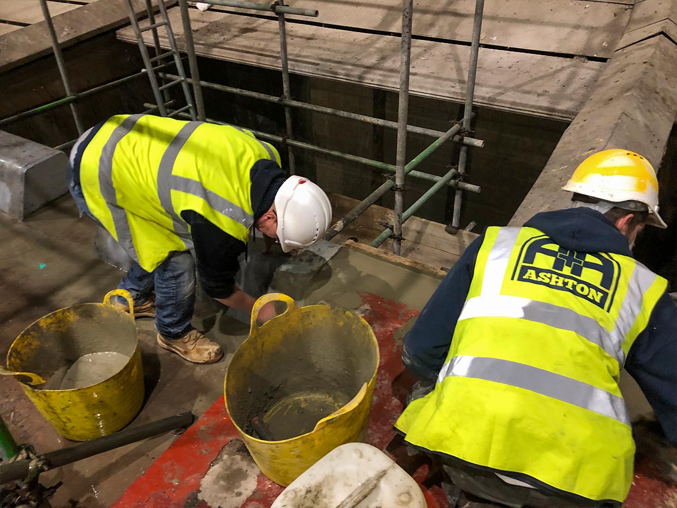 Installation of new fabricated Hardox vehicle stops with internal high flowing concrete